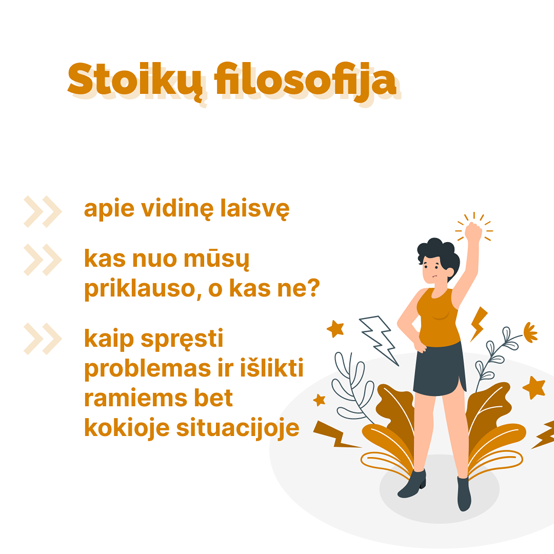 - Stoikų filosofija: apie vidinę laisvę ir pasaulio piliečius.